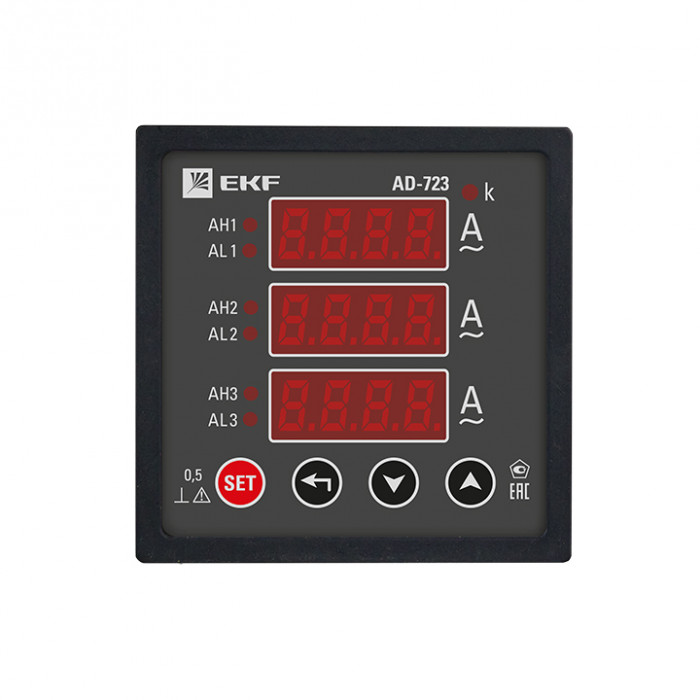 Цифровые электроизмерительные амперметры торговой марки EKF предназначены для измерения силы в однофазных и трехфазных электрических цепях переменного тока. Приборы применяются для работы в закрытых помещениях, в электрощитовом оборудовании, в электроустановках промышленных предприятий, жилых и общественных зданий и сооружений. Амперметры могут быть как прямого, так и трансформаторного подключения. Диапазон измерений приборов трансформаторного подключения зависит только от номинала подключаемого измерительного трансформатора тока. Микропроцессорное устройство приборов позволяет получить класс точности 0,5, многократно превосходящий класс точности аналоговых амперметров.