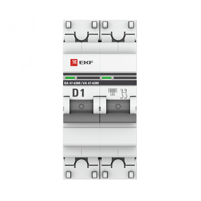 Автоматический выключатель 2P 1А (D) 6кА ВА 47-63M без теплового расцепителя EKF PROxima
