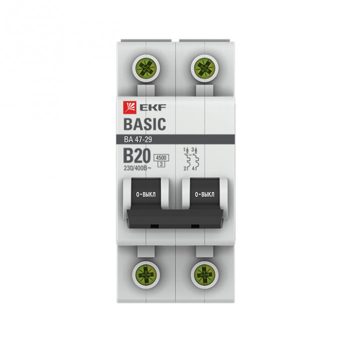 Автоматический выключатель 2P 20А (B) 4,5кА ВА 47-29 EKF Basic
