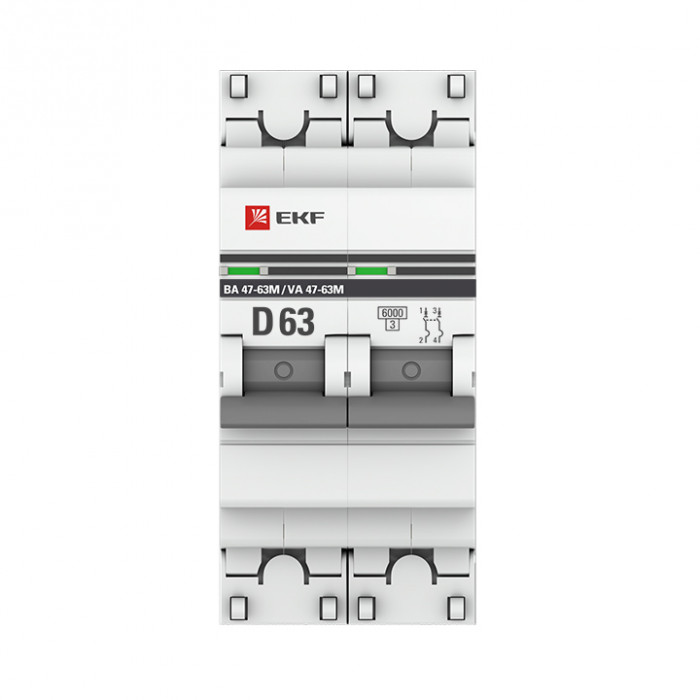 Автоматический выключатель 2P 63А (D) 6кА ВА 47-63M без теплового расцепителя EKF PROxima