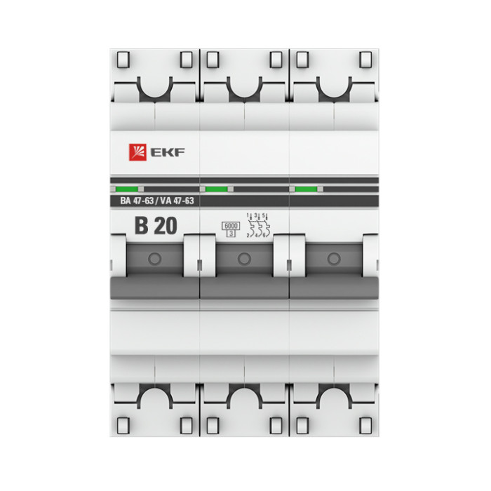 Автоматический выключатель 3P 20А (B) 6кА ВА 47-63 EKF PROxima