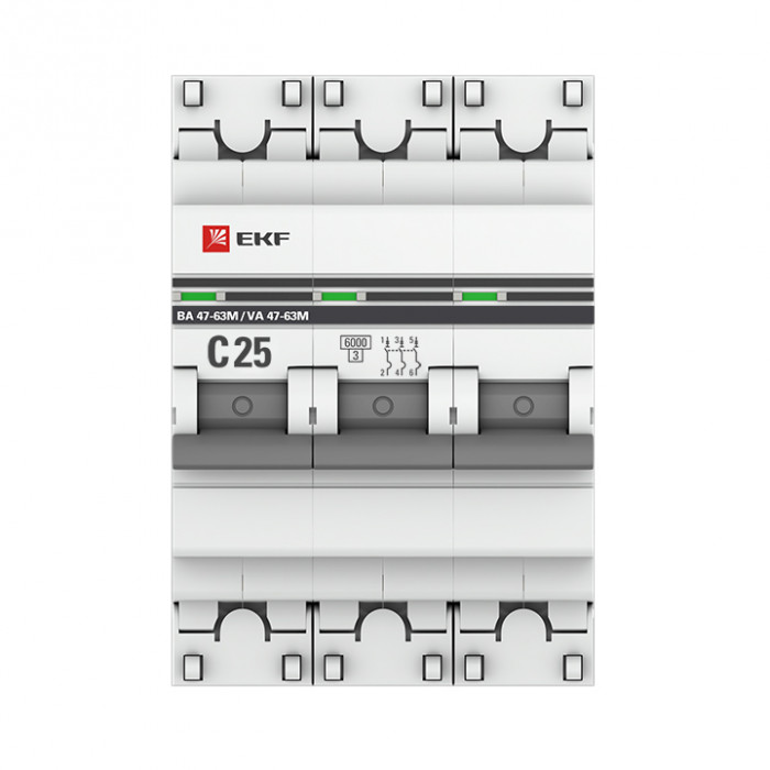 Автоматические выключатели ВА 47-63М без теплового расцепителя 6 кА EKF PROxima являются механическими коммутационными аппаратами, производятся в одно-, двух- и трехполюсном исполнениях и соответствуют ГОСТ Р 50345-2010. Особенностью данной серии выключателей является усовершенствованная конструкция. В выключателях имеются пластиковые крышки, закрывающие доступ к винтовому зажиму и служащие для опломбирования выключателей, что исключает несанкционированный доступ к проводникам. Корпус выключателей усилен дополнительными заклепками для устранения эффекта расхождения корпуса. Выключатели оборудованы удобной ручкой управления, обеспечивающей надежное оперирование изделиями. На лицевой панели выключателей имеется цветовой индикатор состояния. Конструкция установочного зажима обеспечивает свободную установку выключателя на DIN-рейку. Возможна коммутация алюминиевым и медным проводом.