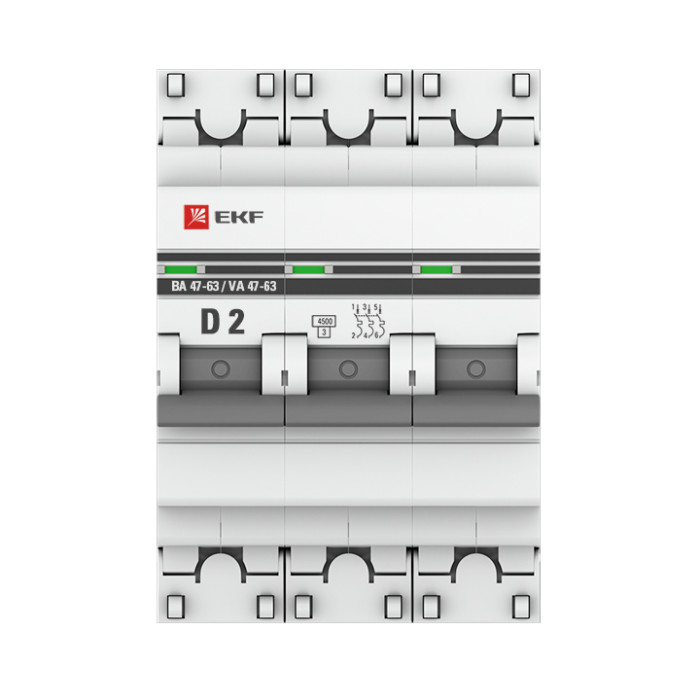 Автоматический выключатель 3P 2А (D) 4,5kA ВА 47-63 EKF PROxima