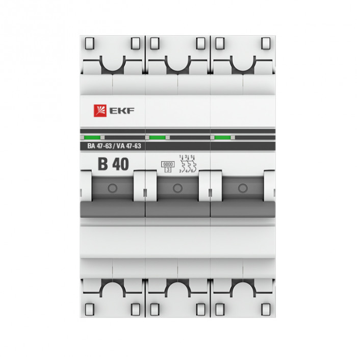 Автоматический выключатель 3P 40А (B) 6кА ВА 47-63 EKF PROxima