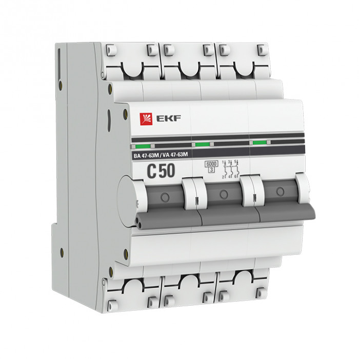Автоматический выключатель 3P 50А (C) 6кА ВА 47-63M без теплового расцепителя EKF PROxima