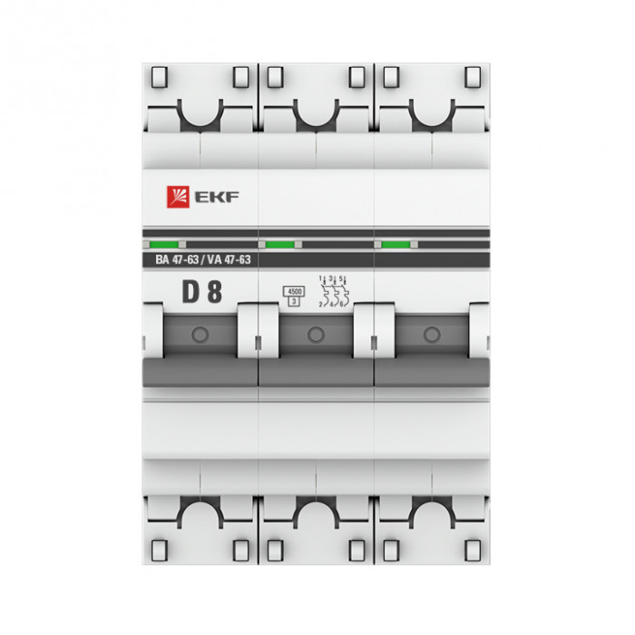 Автоматический выключатель 3P 8А (D) 4,5kA ВА 47-63 EKF PROxima