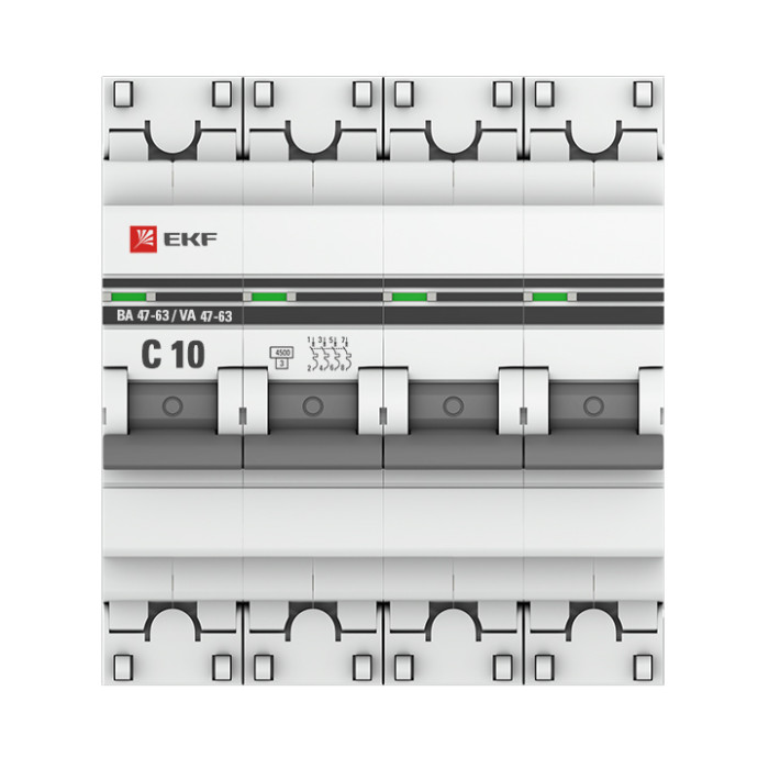 Автоматический выключатель 4P 10А (C) 4,5kA ВА 47-63 EKF PROxima