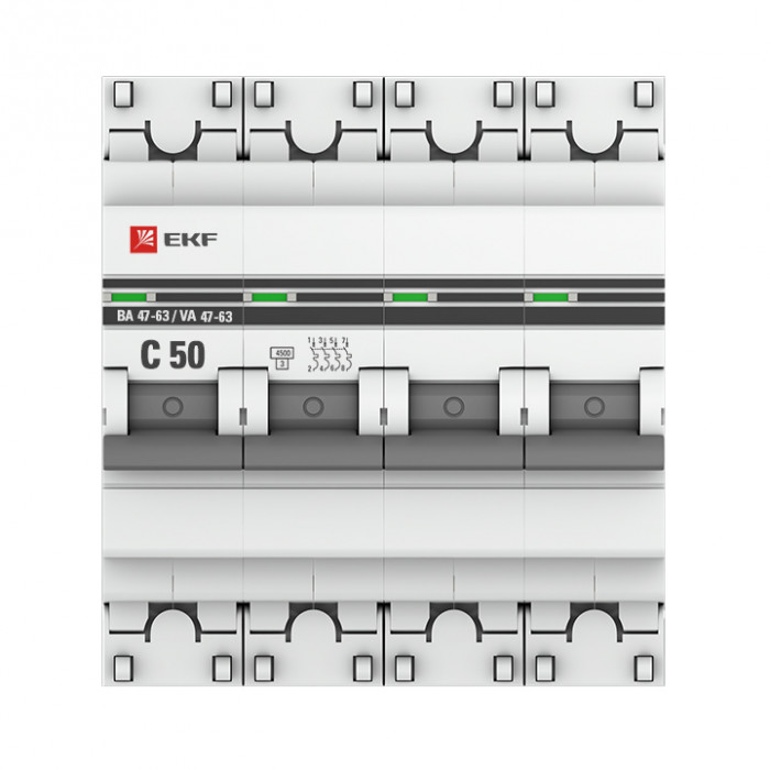 Автоматический выключатель 4P 50А (C) 4,5kA ВА 47-63 EKF PROxima
