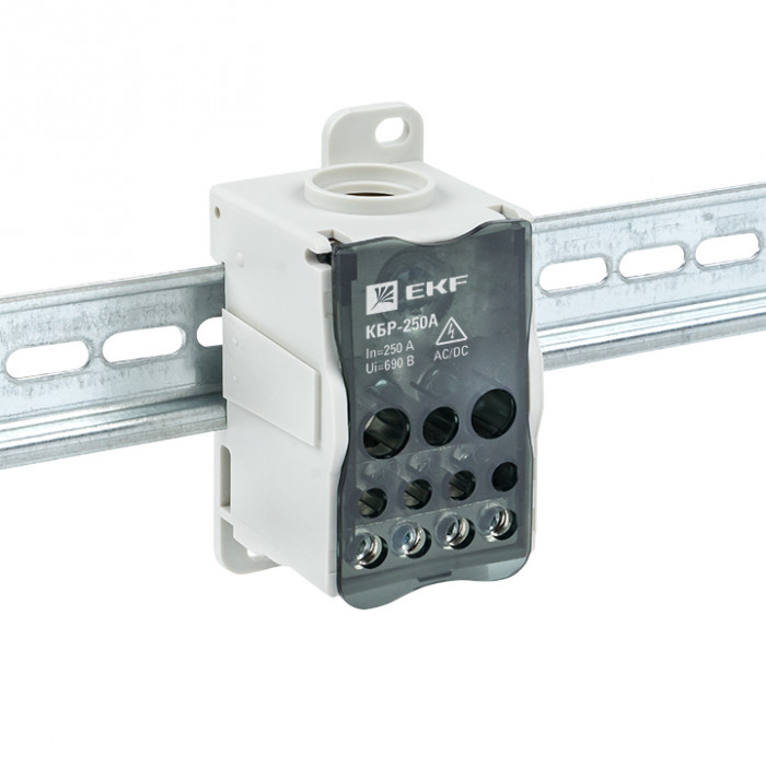 Блок распределительный КБР EKF PROxima предназначен для обеспечения удобного распределения питания в шкафах и используется в качестве переходного клеммника для подключения кабельной жилы большего сечения к нескольким проводникам меньшего сечения, а также для организации главной заземляющей шины (ГЗШ).