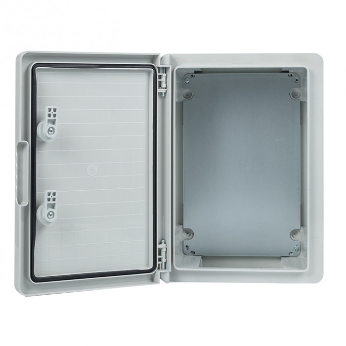 Щиты пластиковые ЩМП-П IP65 навесного исполнения с монтажной панелью предназначены для установки модульного и силового электрооборудования для сборки щитов автоматизации, распределения и управления. Щиты изготовлены из ударопрочного АБС-пластика и обеспечивают надежную защиту установленного оборудования. Степень защиты IP65 предотвращает проникновение пыли и влаги, обеспечивая безопасное функционирование внутренних компонентов шкафа. Поставляются с двумя типами дверей: глухой и прозрачной.