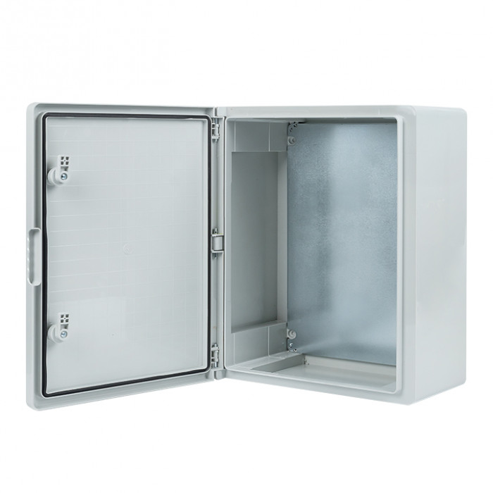 Щиты пластиковые ЩМП-П IP65 навесного исполнения с монтажной панелью предназначены для установки модульного и силового электрооборудования для сборки щитов автоматизации, распределения и управления. Щиты изготовлены из ударопрочного АБС-пластика и обеспечивают надежную защиту установленного оборудования. Степень защиты IP65 предотвращает проникновение пыли и влаги, обеспечивая безопасное функционирование внутренних компонентов шкафа. Поставляются с двумя типами дверей: глухой и прозрачной.
