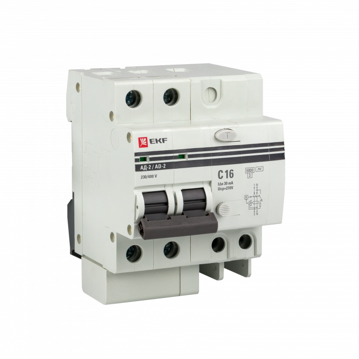 Дифференциальный автоматический выключатель АД-2(4) (S) EKF PROxima представляет собой аппарат, сочетающий функции автоматического выключателя с устройством защитного отключения. При обнаружении автоматическим выключателем в защищаемом участке сети тока утечки (повреждения) на землю или сверхтока (тока перегрузки или короткого замыкания) происходит срабатывание устройства, приводящее к отключению защищаемой сети. Особое отличие дифференциальных автоматов EKF – в наличии встроенного блока защиты от перенапряжения.