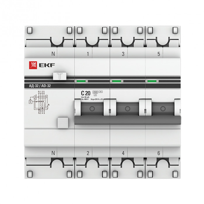 Дифференциальный автоматический выключатель АД-32 EKF PROxima представляет собой аппарат, сочетающий функции автоматического выключателя с устройством защитного отключения. При обнаружении автоматическим выключателем в защищаемом участке сети тока утечки (повреждения) на землю или сверхтока (тока перегрузки или короткого замыкания) происходит срабатывание устройства, приводящее к отключению защищаемой сети.