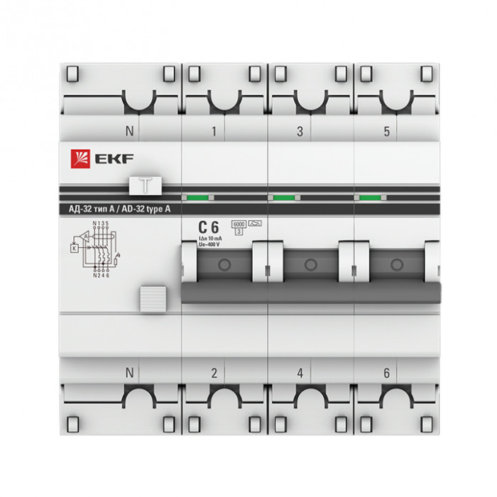 Дифференциальный автоматический выключатель АД-32 EKF PROxima представляет собой аппарат, сочетающий функции автоматического выключателя с устройством защитного отключения. При обнаружении автоматическим выключателем в защищаемом участке сети тока утечки (повреждения) на землю или сверхтока (тока перегрузки или короткого замыкания) происходит срабатывание устройства, приводящее к отключению защищаемой сети.
