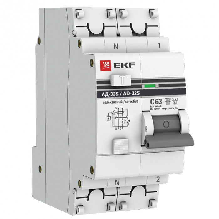 Дифференциальный автоматический выключатель АД-32 EKF PROxima представляет собой аппарат, сочетающий функции автоматического выключателя с устройством защитного отключения. При обнаружении автоматическим выключателем в защищаемом участке сети тока утечки (повреждения) на землю или сверхтока (тока перегрузки или короткого замыкания) происходит срабатывание устройства, приводящее к отключению защищаемой сети.