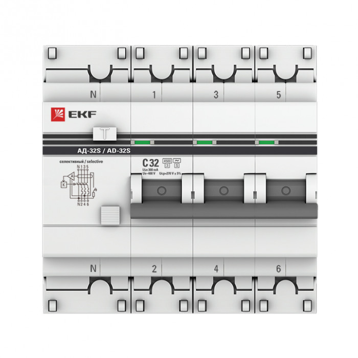Дифференциальный автомат АД-32 (селективный) 3P+N 32А/300мА EKF PROxima