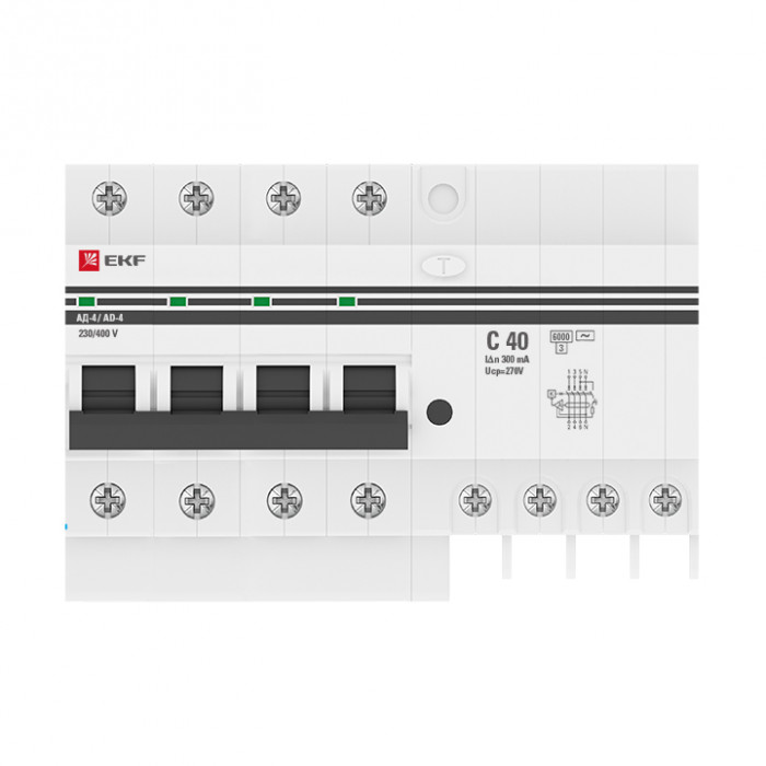 Дифференциальный автоматический выключатель АД-2(4) (S) EKF PROxima представляет собой аппарат, сочетающий функции автоматического выключателя с устройством защитного отключения. При обнаружении автоматическим выключателем в защищаемом участке сети тока утечки (повреждения) на землю или сверхтока (тока перегрузки или короткого замыкания) происходит срабатывание устройства, приводящее к отключению защищаемой сети. Особое отличие дифференциальных автоматов EKF – в наличии встроенного блока защиты от перенапряжения.