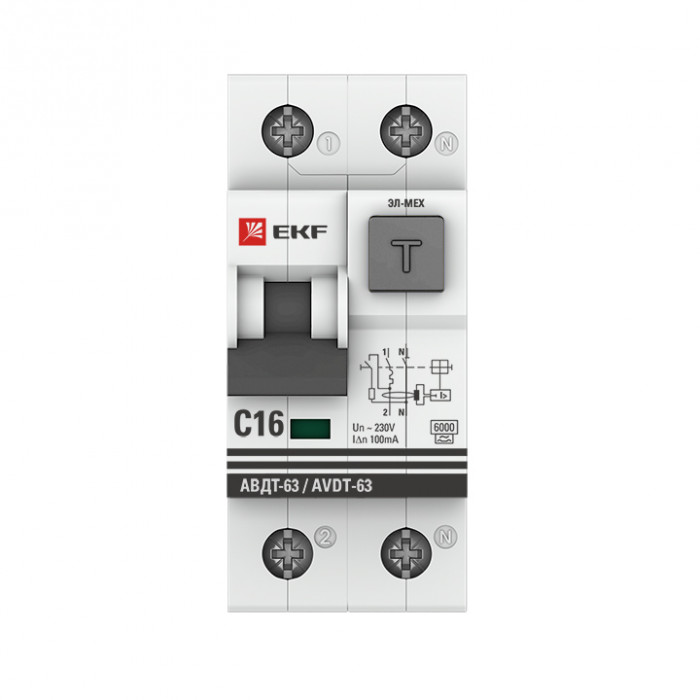 Автоматический выключатель дифференциального тока АВДТ-63 EKF PROxima представляет аппарат, сочетающий функции автоматического выключателя с электромеханическим или электронным УЗО. При обнаружении автоматическим выключателем в защищаемом участке сети тока утечки (повреждения) на землю или сверхтока (тока перегрузки иликороткого замыкания) происходит срабатывание устройства, приводящее к отключению защищаемой сети. Возможна коммутация алюминиевым и медным проводником.Автоматический выключатель дифференциального тока малогабаритный АВДТ-63М EKF PROxima представляет аппарат, сочетающий функции автоматического выключателя с электронным УЗО типа АС в компактном корпусе шириной один модуль. При обнаружении автоматическим выключателем на защищаемом участке сети тока утечки (повреждения) на землю или сверхтока (тока перегрузки или короткого замыкания) происходит срабатывание устройства, приводящее к отключению защищаемой сети. Особое отличие дифференциальных автоматических выключателей EKF с электронным УЗО – в наличии блока защиты от перенапряжения. Возможна коммутация алюминиевым и медным проводом.