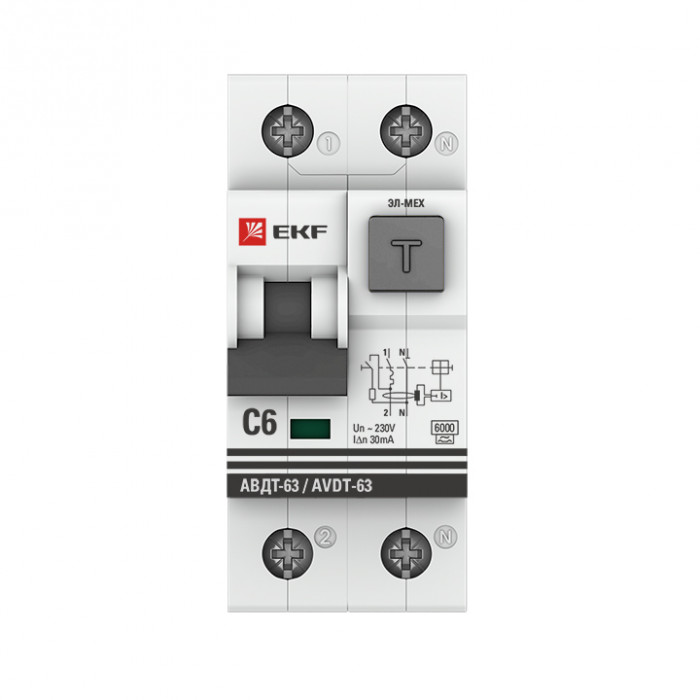 Автоматический выключатель дифференциального тока АВДТ-63 EKF PROxima представляет аппарат, сочетающий функции автоматического выключателя с электромеханическим или электронным УЗО. При обнаружении автоматическим выключателем в защищаемом участке сети тока утечки (повреждения) на землю или сверхтока (тока перегрузки иликороткого замыкания) происходит срабатывание устройства, приводящее к отключению защищаемой сети. Возможна коммутация алюминиевым и медным проводником.Автоматический выключатель дифференциального тока малогабаритный АВДТ-63М EKF PROxima представляет аппарат, сочетающий функции автоматического выключателя с электронным УЗО типа АС в компактном корпусе шириной один модуль. При обнаружении автоматическим выключателем на защищаемом участке сети тока утечки (повреждения) на землю или сверхтока (тока перегрузки или короткого замыкания) происходит срабатывание устройства, приводящее к отключению защищаемой сети. Особое отличие дифференциальных автоматических выключателей EKF с электронным УЗО – в наличии блока защиты от перенапряжения. Возможна коммутация алюминиевым и медным проводом.