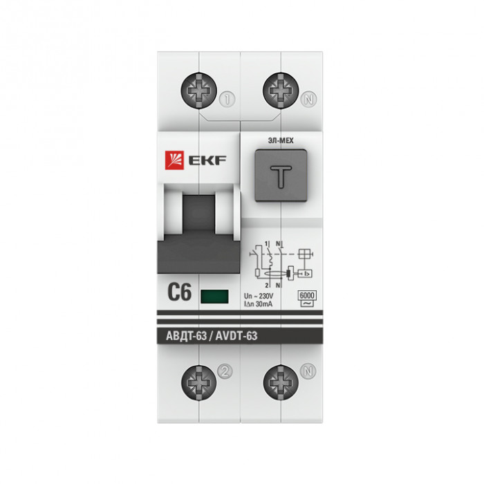 Дифференциальный автомат АВДТ-63 6А/ 30мА (характеристика C, эл-мех тип AС) 6кА EKF PROxima