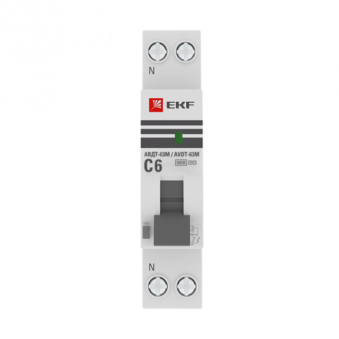 Дифференциальный автомат АВДТ-63М 6А/ 30мА (1мод., хар.C, электронный тип AС) 6кА EKF PROxima