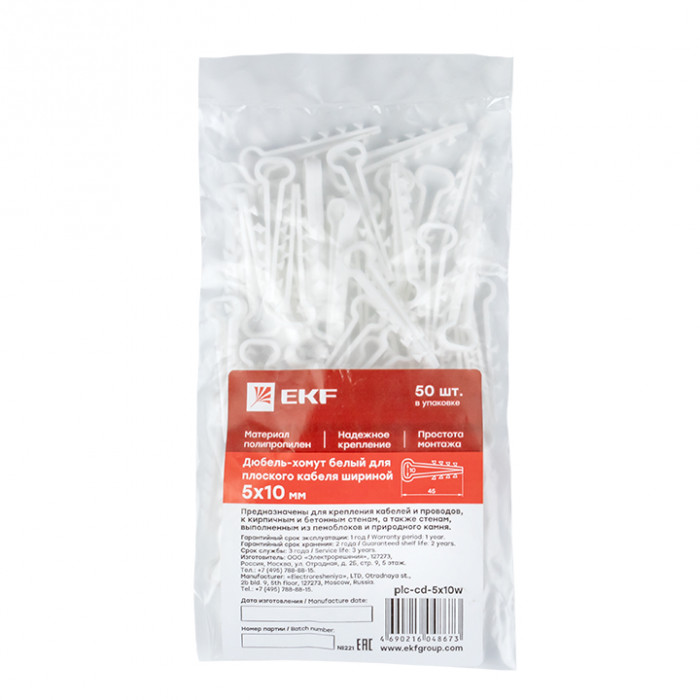 Дюбель-хомут (5х10 мм) для плоского кабеля белый (50 шт.) EKF PROxima