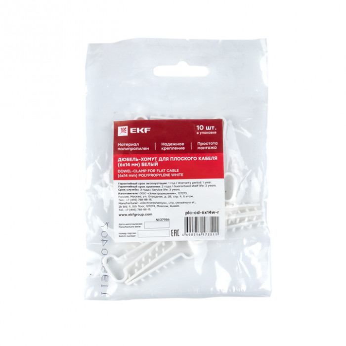 Дюбель-хомут (6х14 мм) для плоского кабеля белый (10 шт.) EKF PROxima