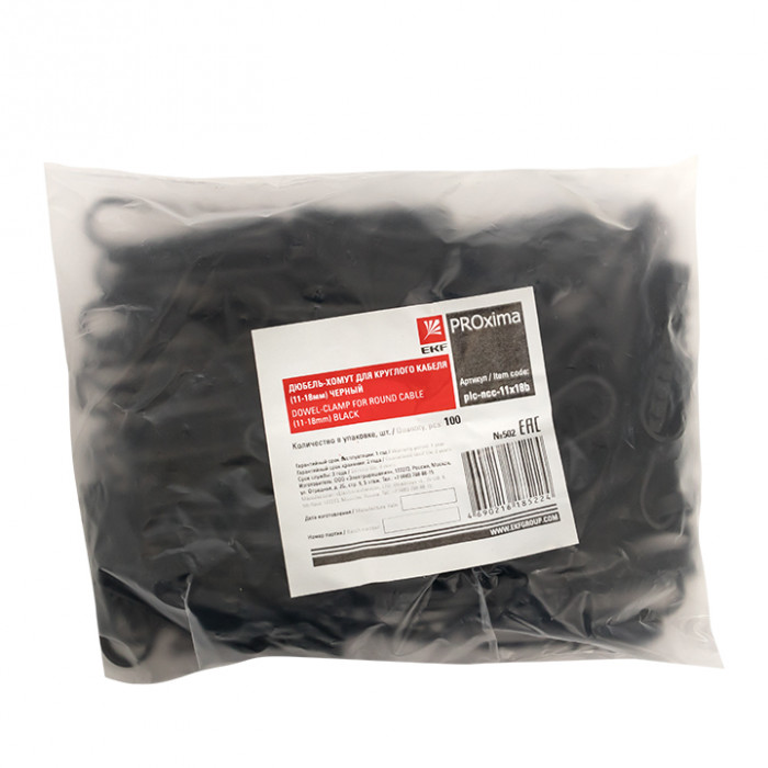 Дюбель-хомут для круглого кабеля (11-18мм) черный (100шт.) EKF PROxima