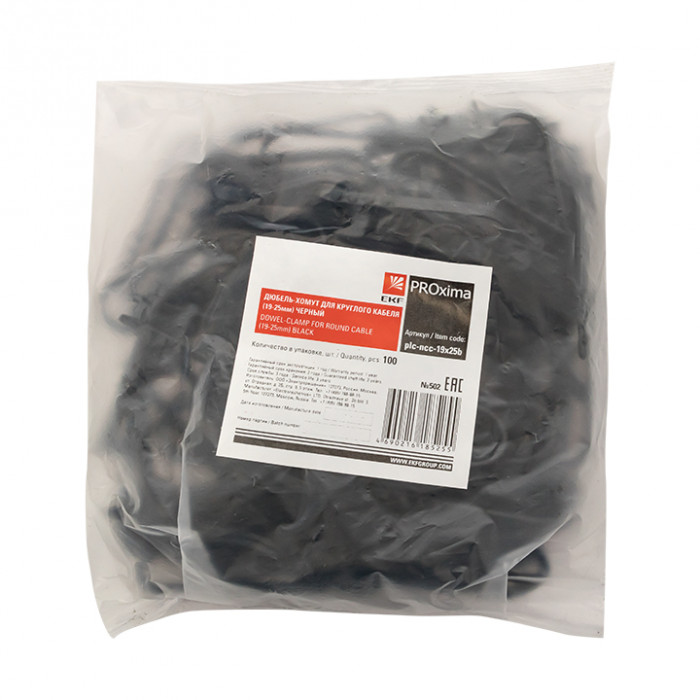 Дюбель-хомут для круглого кабеля (19-25мм) черный (100шт.) EKF PROxima