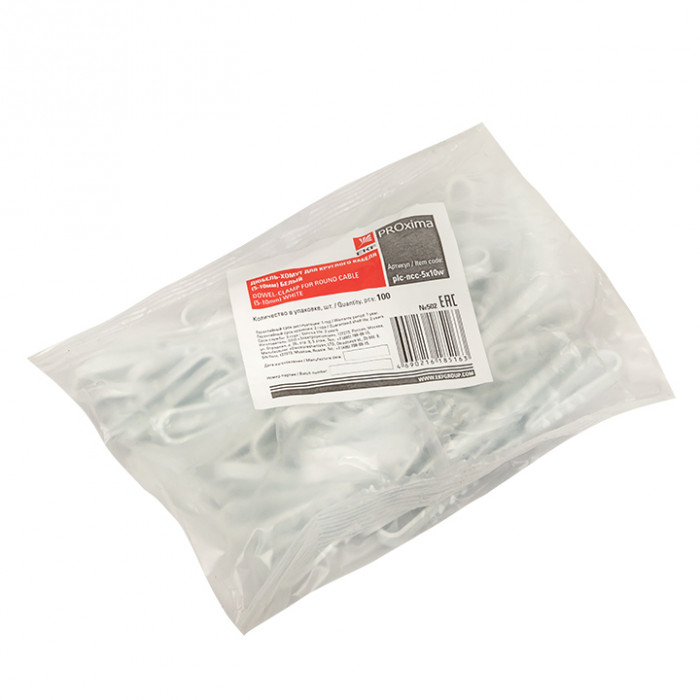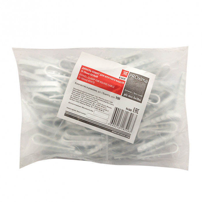 Дюбель-хомут для круглого кабеля (5-10мм) белый (100шт.) EKF PROxima
