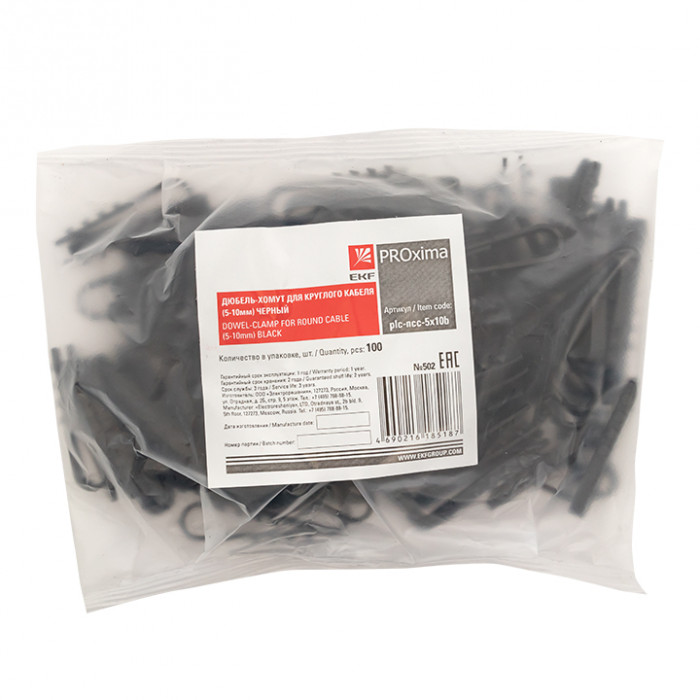 Дюбель-хомут для круглого кабеля (5-10мм) черный (100шт.) EKF PROxima