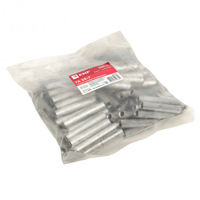 Гильзы алюминиевые EKF PROxima изготавливаются из цельнотянутой алюминиевой трубы марки АД1 и имеют сквозную конструкцию. При соединении посредством гильз секторные жилы перед опрессовкой должны быть предварительно скруглены.