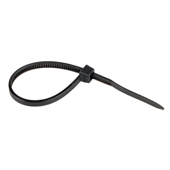 Предназначен для увязки кабелей и проводов в пучок и монтажа кабельных линий и проводников. Ремешок самофиксирующийся, блокирующий механизм. Изготовлен из Nylon 6.6, устойчивого к старению, коррозии, воздействию солей, ультрафиолета, кислот, щелочей, спирта, бензина и масел. При производстве кабельных стяжек черного цвета добавляется угольный порошок, который является одним из наиболее эффективных стабилизаторов. Он улучшает физические свойства продукции в стойкости к погодным условиям и УФ-излучению (прямые солнечные лучи).