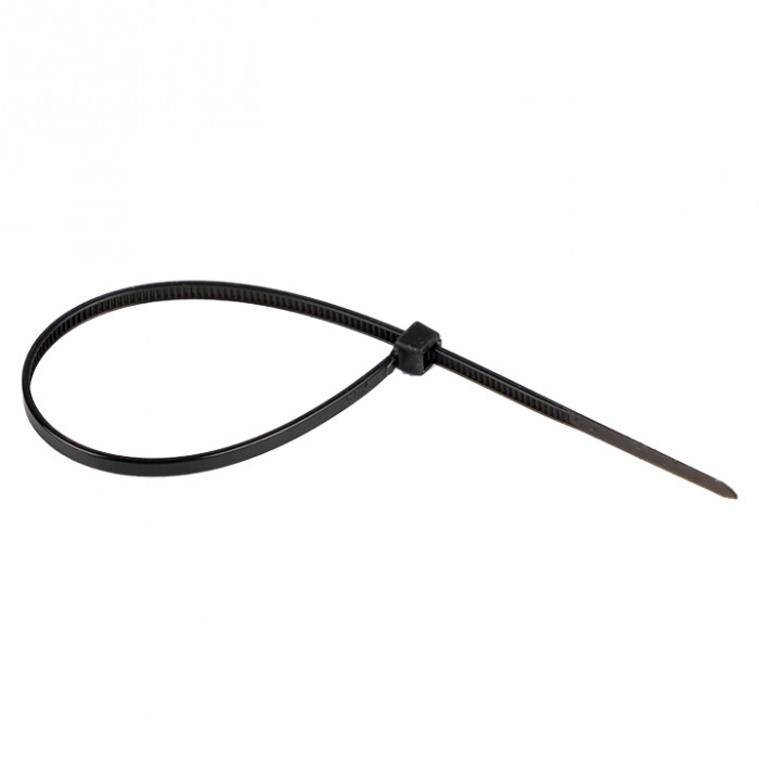 Предназначен для увязки кабелей и проводов в пучок и монтажа кабельных линий и проводников. Ремешок самофиксирующийся, блокирующий механизм. Изготовлен из Nylon 6.6, устойчивого к старению, коррозии, воздействию солей, ультрафиолета, кислот, щелочей, спирта, бензина и масел. При производстве кабельных стяжек черного цвета добавляется угольный порошок, который является одним из наиболее эффективных стабилизаторов. Он улучшает физические свойства продукции в стойкости к погодным условиям и УФ-излучению (прямые солнечные лучи).