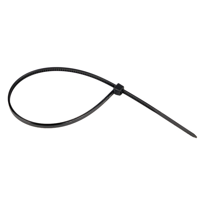 Предназначен для увязки кабелей и проводов в пучок и монтажа кабельных линий и проводников. Ремешок самофиксирующийся, блокирующий механизм. Изготовлен из Nylon 6.6, устойчивого к старению, коррозии, воздействию солей, ультрафиолета, кислот, щелочей, спирта, бензина и масел. При производстве кабельных стяжек черного цвета добавляется угольный порошок, который является одним из наиболее эффективных стабилизаторов. Он улучшает физические свойства продукции в стойкости к погодным условиям и УФ-излучению (прямые солнечные лучи).
