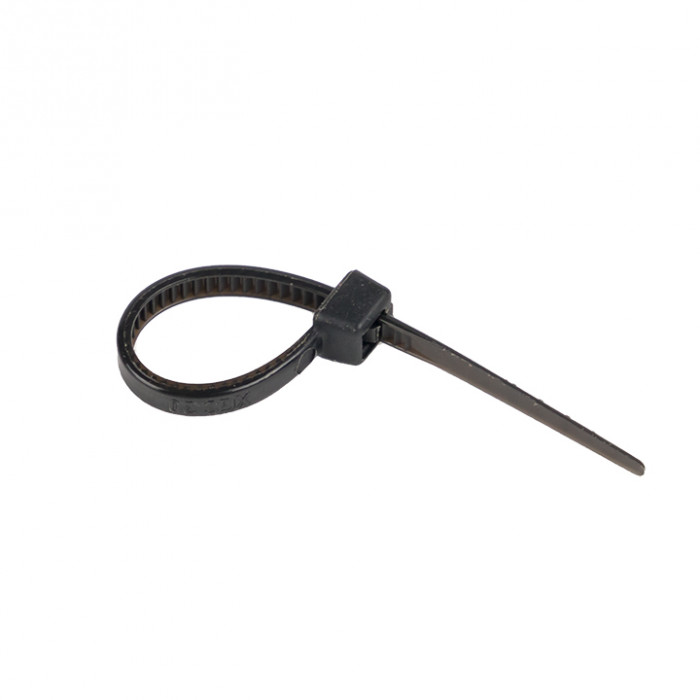 Предназначен для увязки кабелей и проводов в пучок и монтажа кабельных линий и проводников. Ремешок самофиксирующийся, блокирующий механизм. Изготовлен из Nylon 6.6, устойчивого к старению, коррозии, воздействию солей, ультрафиолета, кислот, щелочей, спирта, бензина и масел. При производстве кабельных стяжек черного цвета добавляется угольный порошок, который является одним из наиболее эффективных стабилизаторов. Он улучшает физические свойства продукции в стойкости к погодным условиям и УФ-излучению (прямые солнечные лучи).