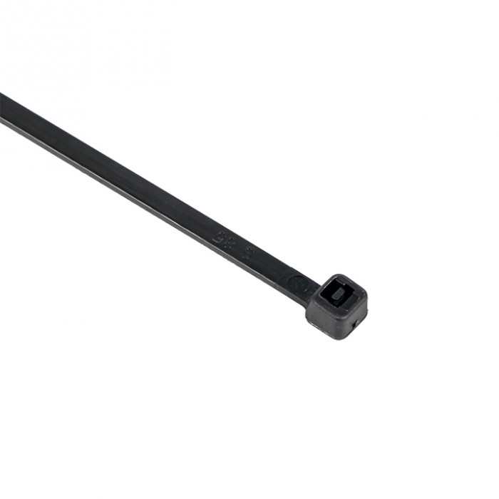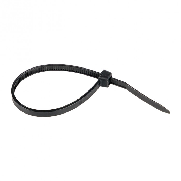 Предназначен для увязки кабелей и проводов в пучок и монтажа кабельных линий и проводников. Ремешок самофиксирующийся, блокирующий механизм. Изготовлен из Nylon 6.6, устойчивого к старению, коррозии, воздействию солей, ультрафиолета, кислот, щелочей, спирта, бензина и масел. При производстве кабельных стяжек черного цвета добавляется угольный порошок, который является одним из наиболее эффективных стабилизаторов. Он улучшает физические свойства продукции в стойкости к погодным условиям и УФ-излучению (прямые солнечные лучи).