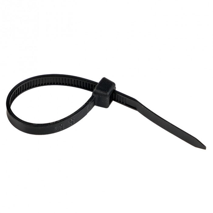 Предназначен для увязки кабелей и проводов в пучок и монтажа кабельных линий и проводников. Ремешок самофиксирующийся, блокирующий механизм. Изготовлен из Nylon 6.6, устойчивого к старению, коррозии, воздействию солей, ультрафиолета, кислот, щелочей, спирта, бензина и масел. При производстве кабельных стяжек черного цвета добавляется угольный порошок, который является одним из наиболее эффективных стабилизаторов. Он улучшает физические свойства продукции в стойкости к погодным условиям и УФ-излучению (прямые солнечные лучи).