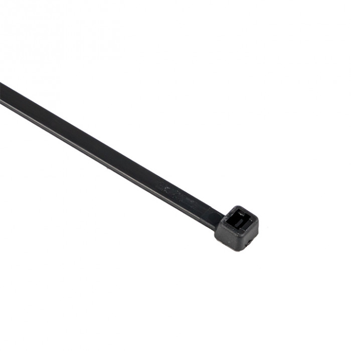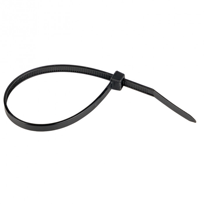 Предназначен для увязки кабелей и проводов в пучок и монтажа кабельных линий и проводников. Ремешок самофиксирующийся, блокирующий механизм. Изготовлен из Nylon 6.6, устойчивого к старению, коррозии, воздействию солей, ультрафиолета, кислот, щелочей, спирта, бензина и масел. При производстве кабельных стяжек черного цвета добавляется угольный порошок, который является одним из наиболее эффективных стабилизаторов. Он улучшает физические свойства продукции в стойкости к погодным условиям и УФ-излучению (прямые солнечные лучи).