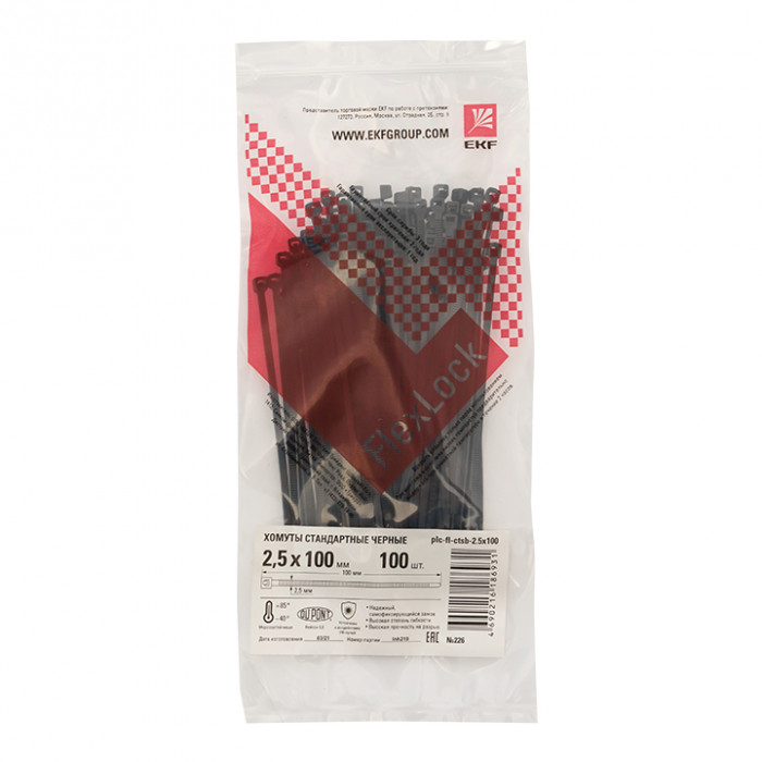 Хомут P6.6 стандартный (ч), 2.5x100 (100шт) FlexLock PROxima