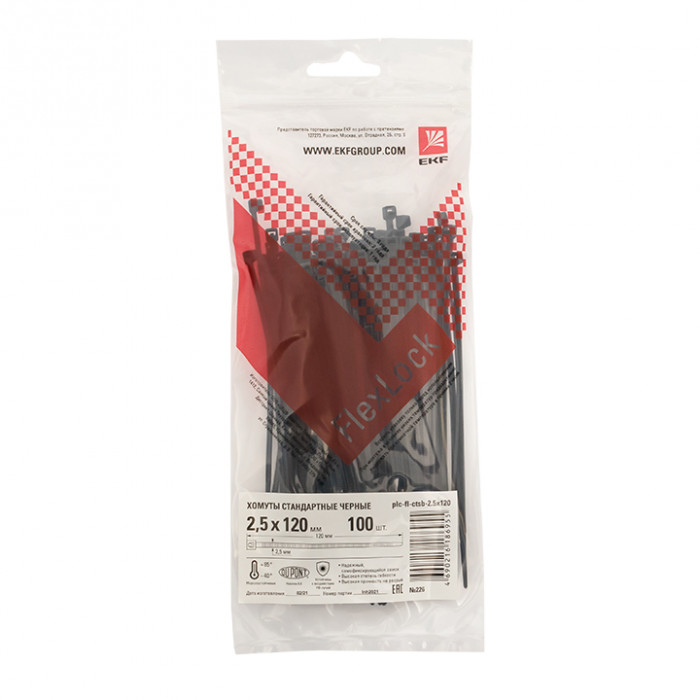Хомут P6.6 стандартный (ч), 2.5x120 (100шт) FlexLock PROxima