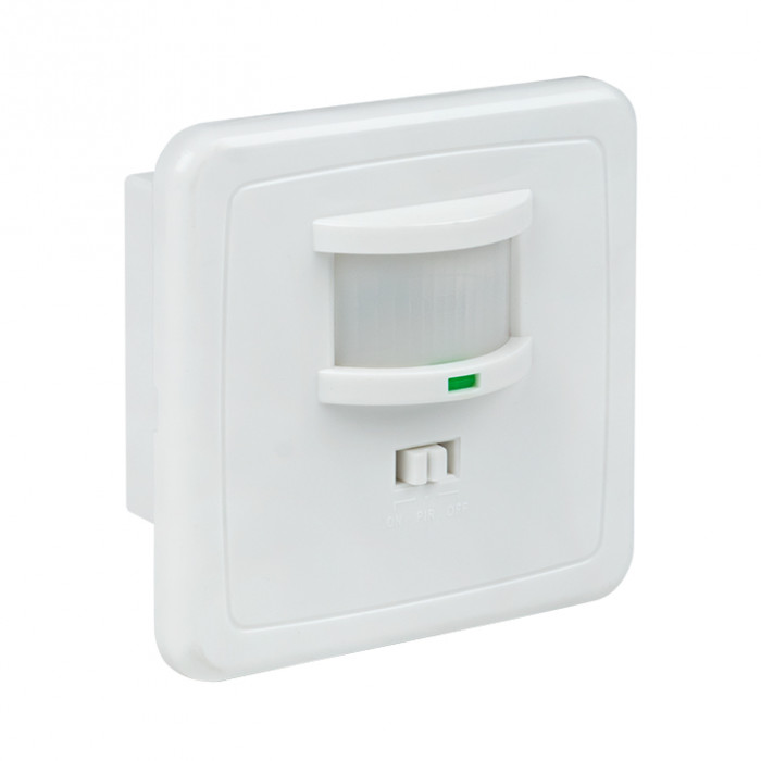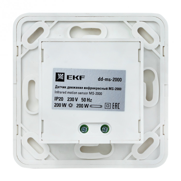 'Датчик движения инфракрасный MS-2000 предназначен для экономии электроэнергии за счет автоматического управления освещением и другими инженерными системами. Датчик реагирует на движение людей и других объектов в зоне действия сенсора, принцип работы датчика основан на отслеживании уровня ИК-излучения в поле зрения. Датчик MS-2000 предназначен для встраивания в стену и устанавливается в стандартный подрозетник. Рекомендуется использовать датчик в кладовках, гардеробных и других помещениях с временным пребыванием людей. Алгоритм работы: при возникновении движения в поле зрения датчика встроенное электромеханическое реле (рассчитано на полную мощность 500Вт) коммутирует подключенную нагрузку. После этого нагрузка находится под напряжением в течение заданного времени (от 10 сек. до 7 минут, время настраивается) и выключается. Дополнительно датчик имеет функцию контроля освещенности.'