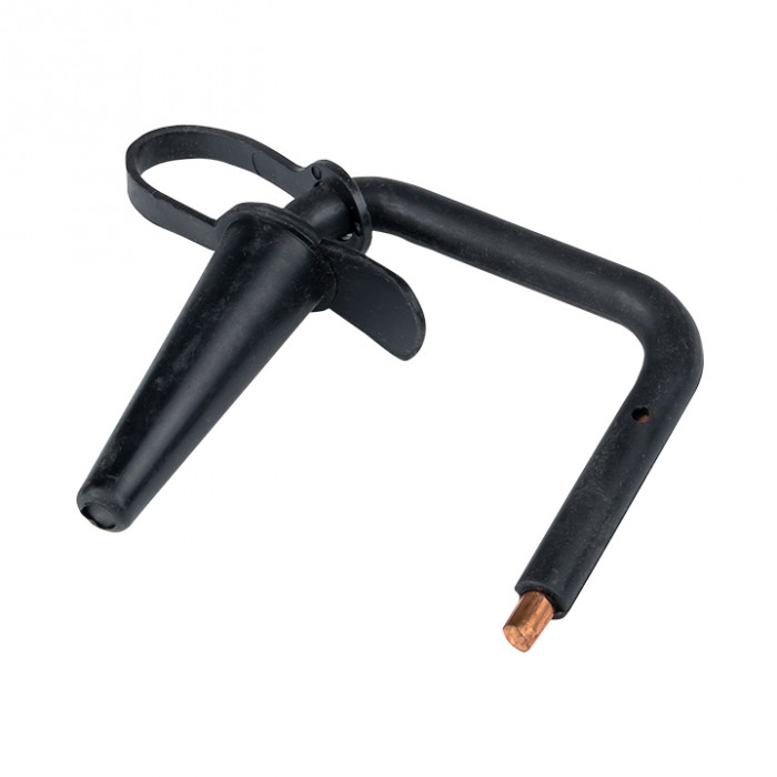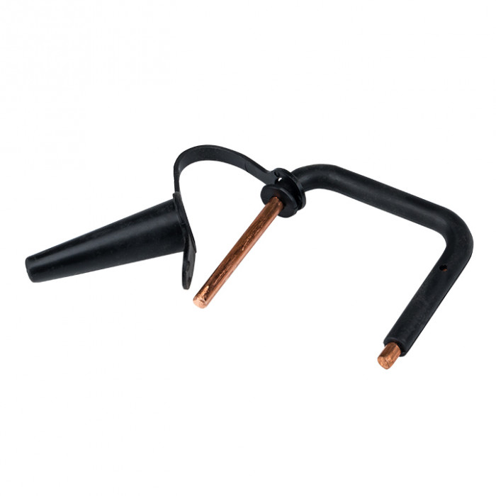 'Изолированная скоба для наложения защитного заземления c-200. Артикулы: с-200 Скоба предназначена для замера напряжения, закорачивания и защитного заземления ВЛИ при выполнении монтажных работ. Подключается к проводу СИП с помощью прокалывающих зажимов. Устанавливается на токопроводящих и нулевой жилах на весь срок службы линии. Изготовлена из медного прутка, покрытого полимером, стойким к ультрафиолетовому излучению. Рабочая часть закрывается защитным колпачком.'