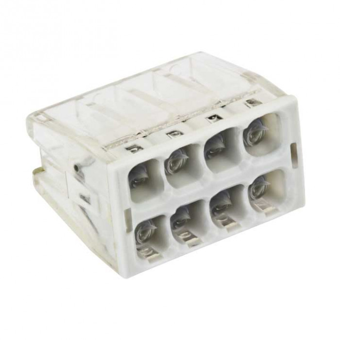 Качество подключения не зависит от квалификации электромонтажника. Каждый проводник имеет отдельное клеммное место. Контактная паста автоматически снимает окисную пленку с алюминиевых проводов и предохраняет их от повторного окисления.