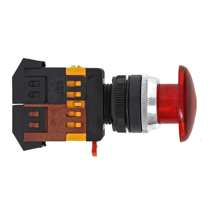 Кнопки типа 'Грибок' применяются в электрических цепях переменного тока частотой 50/60 Гц с напряжением до 660 В и постоянным напряжением до 400 В. Исполнение такого типа ( активная часть выступает) позволяет простым нажатием быстро подать управляющий сигнал на оборудование. Включение кнопки облегчается за счет большой площади поверхности нажатия.