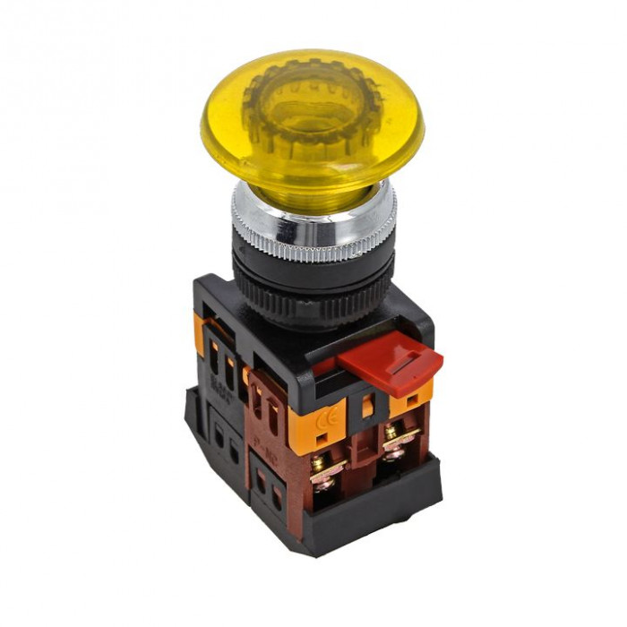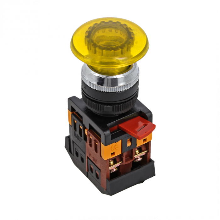 Кнопки типа 'Грибок' применяются в электрических цепях переменного тока частотой 50/60 Гц с напряжением до 660 В и постоянным напряжением до 400 В. Исполнение такого типа ( активная часть выступает) позволяет простым нажатием быстро подать управляющий сигнал на оборудование. Включение кнопки облегчается за счет большой площади поверхности нажатия.