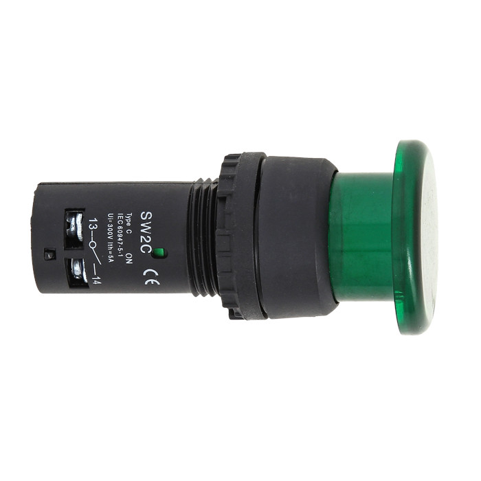 Кнопки типа 'Грибок' применяются в электрических цепях переменного тока частотой 50/60 Гц с напряжением до 660 В и постоянным напряжением до 400 В. Исполнение такого типа ( активная часть выступает) позволяет простым нажатием быстро подать управляющий сигнал на оборудование. Включение кнопки облегчается за счет большой площади поверхности нажатия.