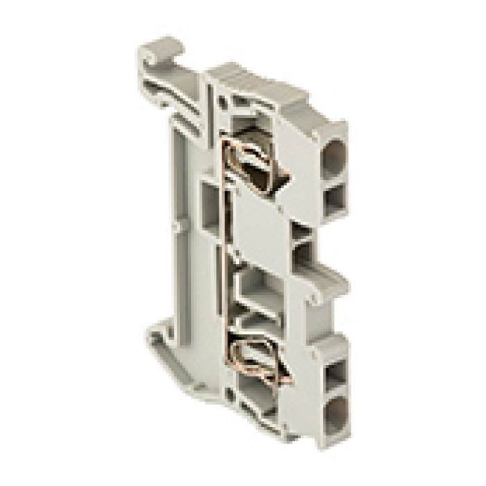 Особоепреимущество данных клемм – в безвинтовом креплении проводников: используются подпружиненные самозажимные контакты. Подводпроводника осуществляется сверху клеммы. Для отсоединения проводника необходимо нажать отверткой на пружину через отверстие, расположенное сверху клеммы. Рассчитаны на применение в цепях переменного тока с напряжением до 800 В и частотой 50 Гц. Клеммы изготавливаются из огнестойкого полиамида следующих цветов: серый,желто-зеленый (земля). Дополнительно к клеммам выпускаются боковые заглушки для закрытия контактов конечной клеммы, перемычки для разветвления проводников, маркеры и др.