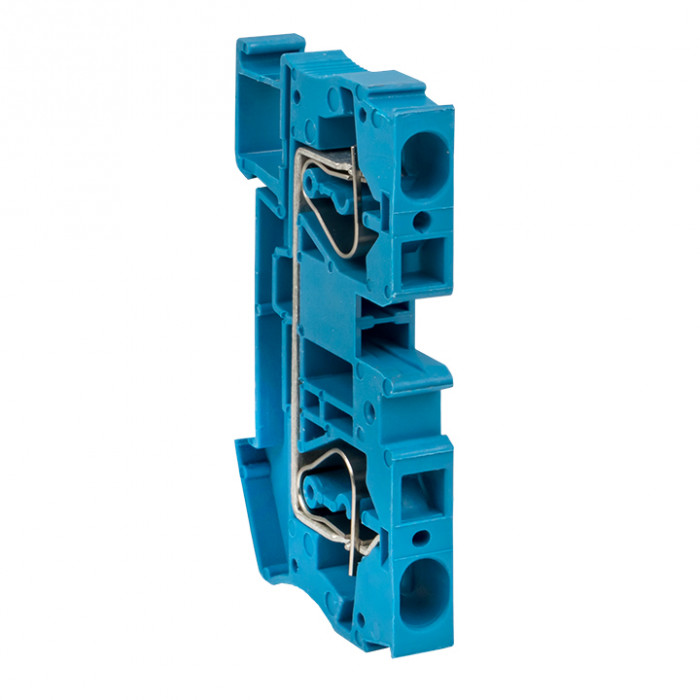 Особоепреимущество данных клемм – в безвинтовом креплении проводников: используются подпружиненные самозажимные контакты. Подводпроводника осуществляется сверху клеммы. Для отсоединения проводника необходимо нажать отверткой на пружину через отверстие, расположенное сверху клеммы. Рассчитаны на применение в цепях переменного тока с напряжением до 800 В и частотой 50 Гц. Клеммы изготавливаются из огнестойкого полиамида следующих цветов: серый,желто-зеленый (земля). Дополнительно к клеммам выпускаются боковые заглушки для закрытия контактов конечной клеммы, перемычки для разветвления проводников, маркеры и др.