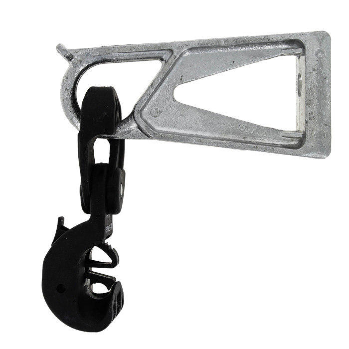 'Комплекты промежуточной подвески типа ES: es-1500, es-1500-eco. Артикулы: es-1500, es-1500-eco. Комплекты предназначены для крепления изолированной несущей жилы СИП-2 на промежуточных опорах. Устанавливаются при помощи монтажной ленты F 2007.50. В кронштейне предусмотрен специальный выступ для фиксации крюка раскаточного ролика.'